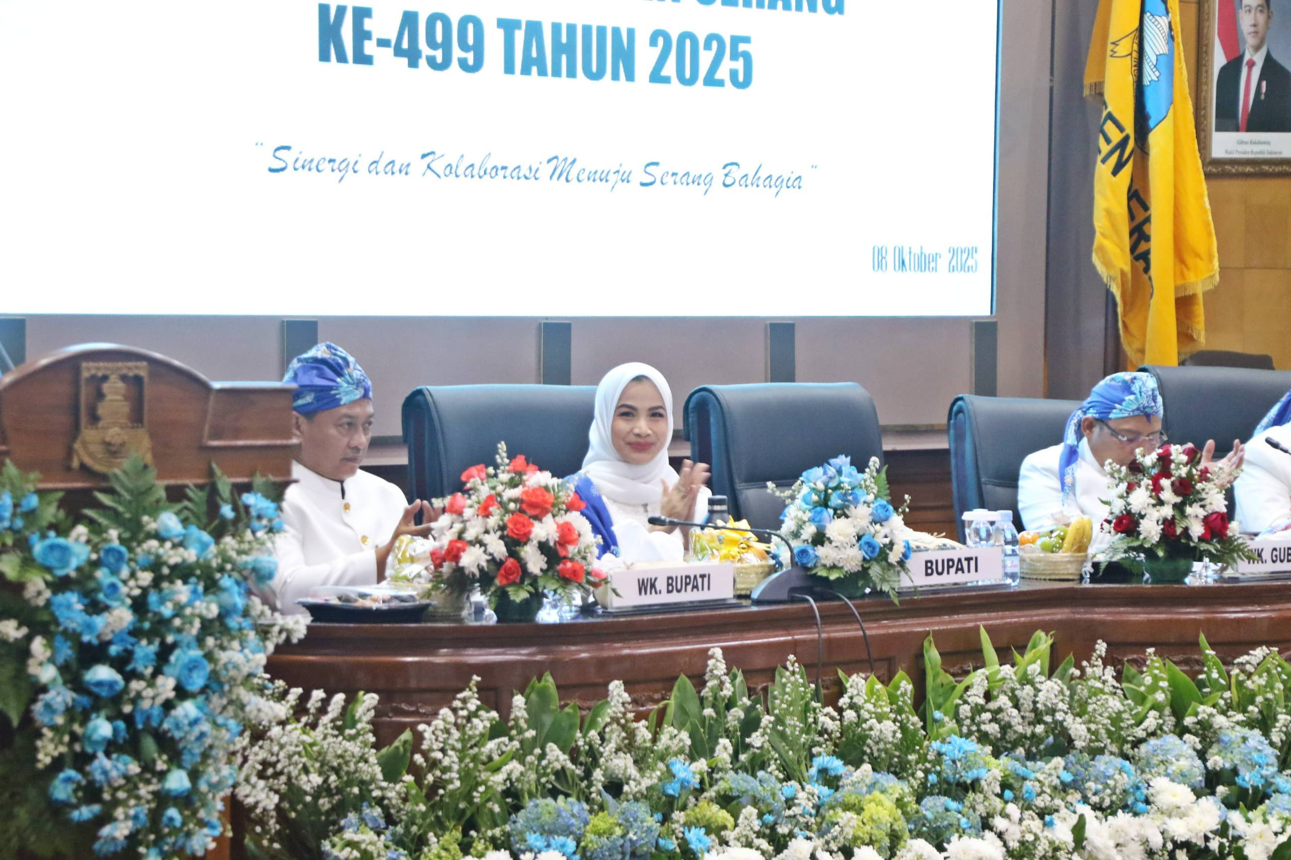 “Di usia yang ke-499 ini, kita berada di sebuah titik persimpangan yang strategis. Kita baru saja menutup lembaran rencana Pembangunan Jangka Menengah Daerah (RPJMD) 2021-2026 dan secara bersamaan membuka gerbang baru melalui RPJMD 2025-2029. Momen ini kita tandai dengan sebuah visi besar yang menjadi kompas kita bersama: “terwujudnya kabupaten Serang Bahagia,” jelas Bupati dalam sambutannya, Rabu (8/10/2025).