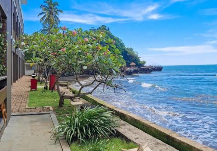 Hotel yang berada persis di samping objek wisata Karang Bolong ini menawarkan panorama laut yang memanjakan mata. Bahkan, suasana di kawasan hotel sering disebut mirip dengan nuansa liburan di Bali karena langsung menghadap ke pantai.