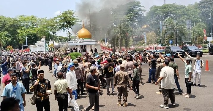 Walan.id – Hari ulang tahun Kabupaten Serang yang ke-499 diwarnai ricuh aksi demonstrasi mahasiswa hingga menerobos Brigade Polisi dan Satpol PP.