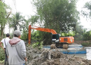 Walan.id - Dinas Pekerjaan Umum dan Penataan Ruang (DPUPR) Kabupaten Serang menormalisasi saluran Sungai Cikambuy yang merupakan anak Sungai Ciujung ...