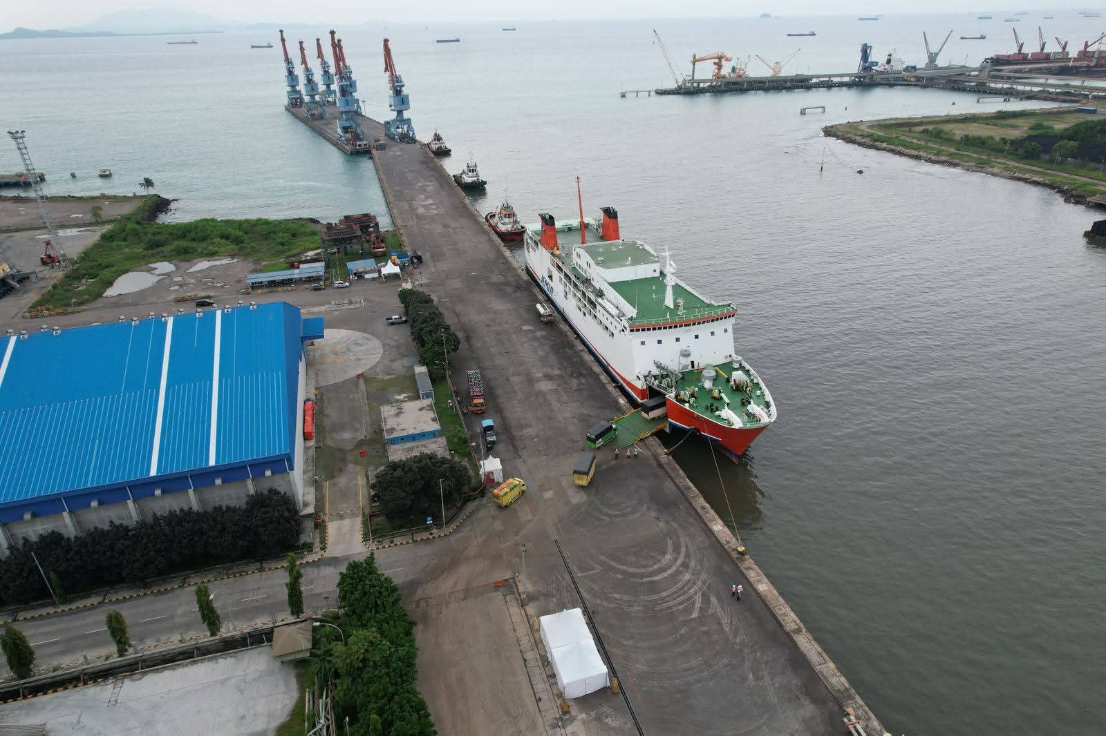 Operasional layanan penyeberangan di Pelabuhan Ciwandan menuju Sumatera terpantau berjalan lancar, tertib, dan terkendali.